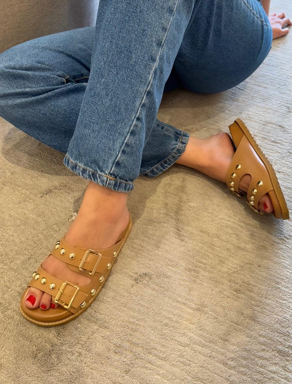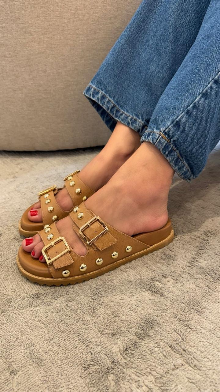 Confortáveis, práticas são perfeitas para usar no dia a dia , com saias, shorts e vestidos. A birken Estela possui a combinação de duas tiras largas sobre o peito do pé com enfeites de fivelas no tom ouro, possui solado anatômico é um modelo básico essencial para o dia a dia.