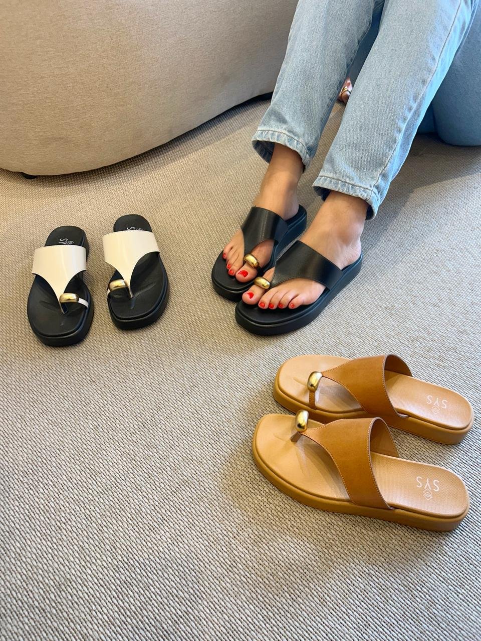 Essa papete possui uma cabedal que envolve o peito do pé, e um detalhe de metal dourado arredondado no dedo que da um toque moderno e super fashion, tem um design super versátil, combina com varios tipos de look, desde um visual mais casual até um mais elegante!