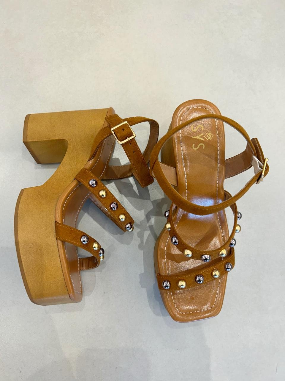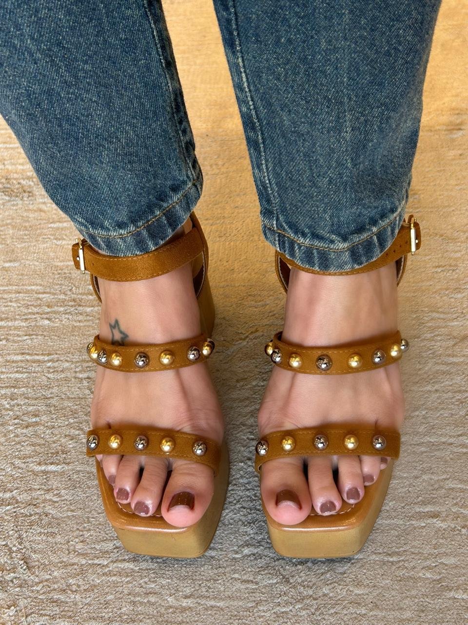 Combinação máxima de conforto e estilo, com detalhes em tachas no cabedal. Ótima aposta tanto para sair à noite, usando com vestidos e saias, quanto no dia a dia.