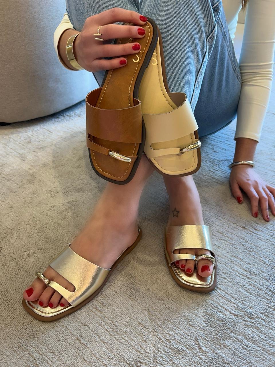 Esta sandália rasteira possui um detalhe dourado no dedo, é perfeita para quem deseja um toque natural e moderno ao mesmo tempo. A tira ajustável no tornozelo proporciona um encaixe perfeito, garantindo segurança e conforto a cada passo. Ideal para ocasiões informais ou para dar um charme extra ao look de verão