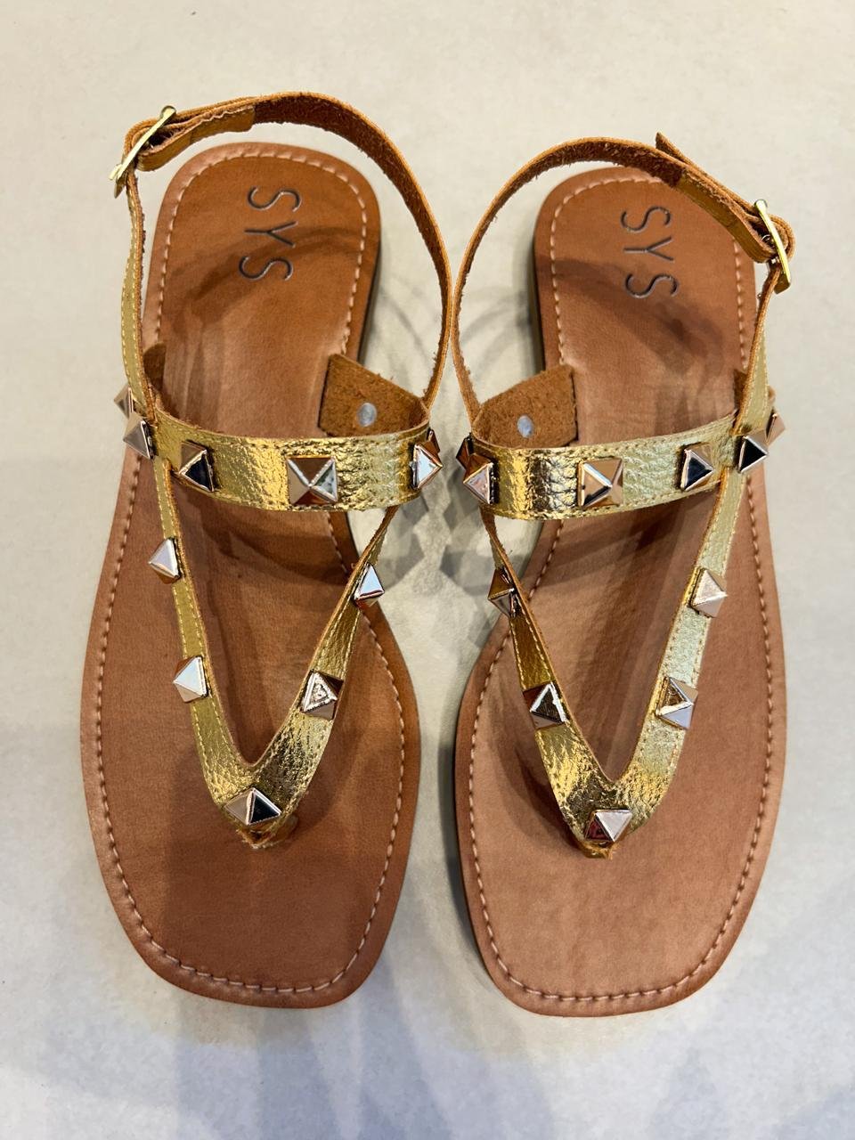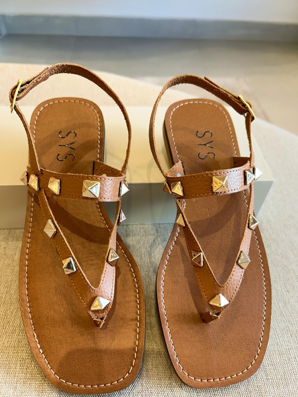 Rasteira com detalhes em tachas douradas o cabedal, ajustável no tornozelo proporciona um encaixe perfeito, garantindo segurança e conforto a cada passo. Ideal para ocasiões informais ou para dar um charme extra ao look de verão.