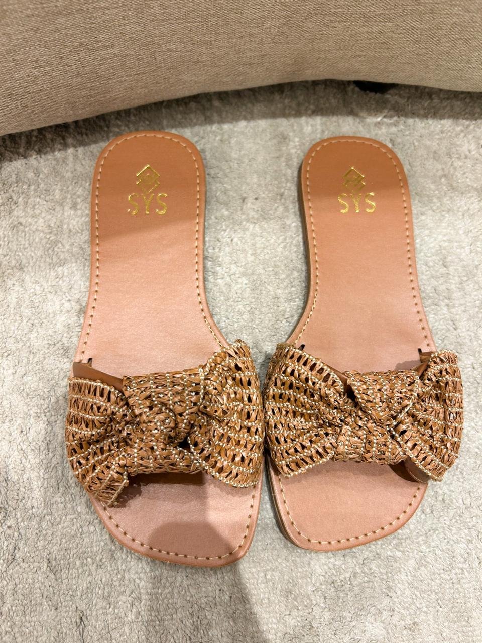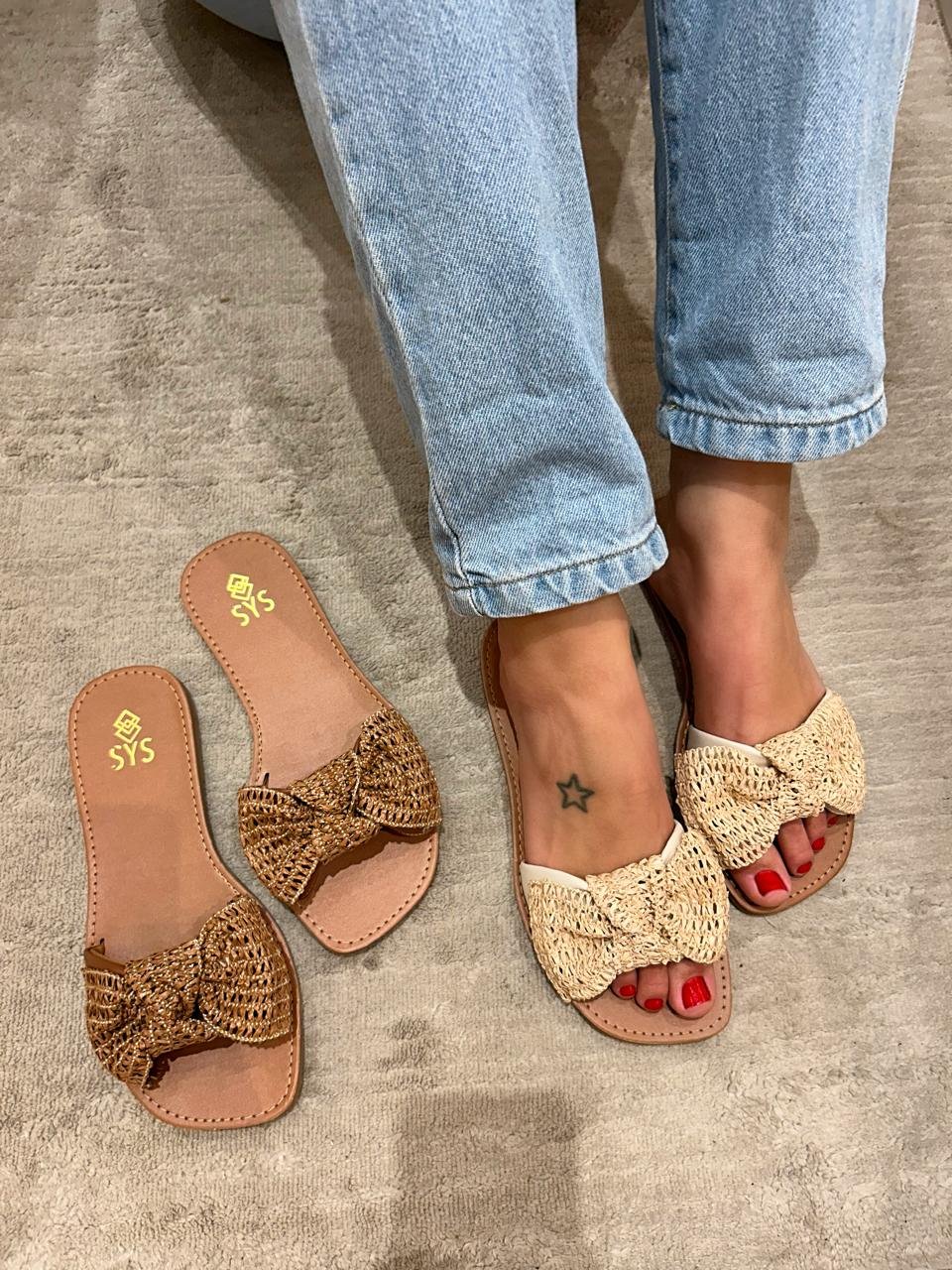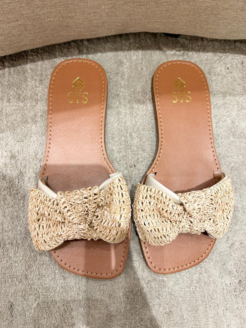 Rasteira com detalhes em laço no cabedal, trazendo um efeito em palha, conforto e sofisticação em uma única peça! É perfeita para quem deseja um toque natural e moderno ao mesmo tempo