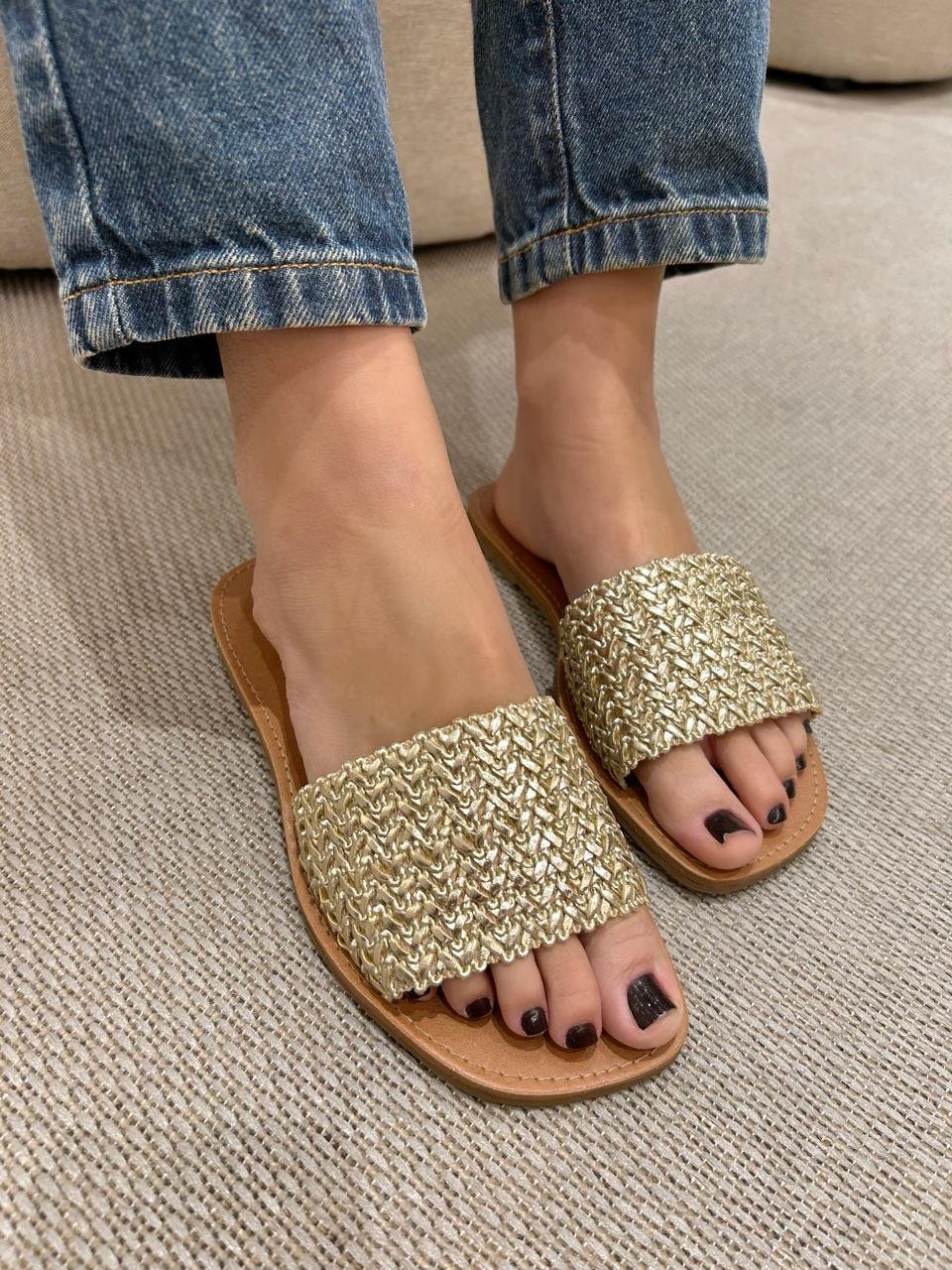Rasteira no estilo tramado, clássica e pratica, ideal para o dia a dia, uma ótima escolha parar esse verão