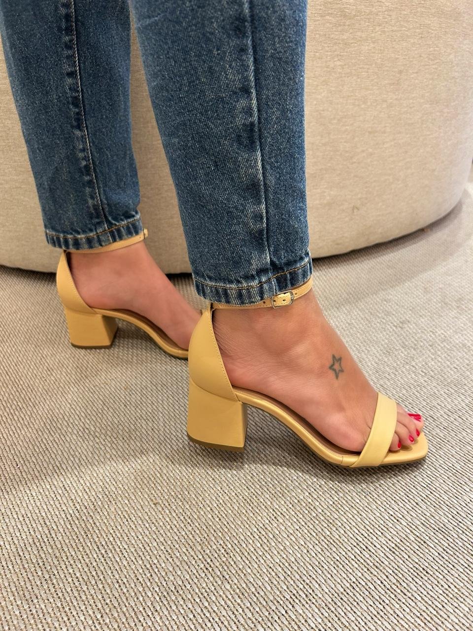 Sandália clássica e confortável, ideal para ambientes elegantes ou casuais, o salto bloco médio garante estabilidade e elegância, ideal para quem quer arrasar o dia todo sem abrir mão do estilo.