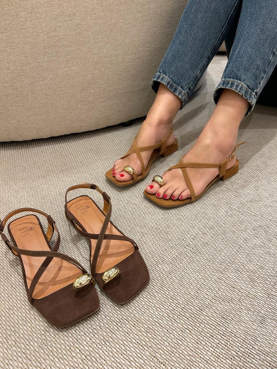 Sandália salto bloco pequeno, com detalhe dourado no dedo e tiras que prendem no tornozelo, trazendo conforto e segurança, ideal para dar um toque de elegância no seu look !