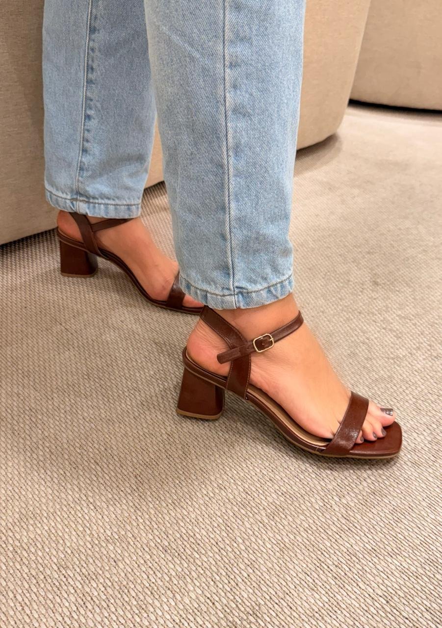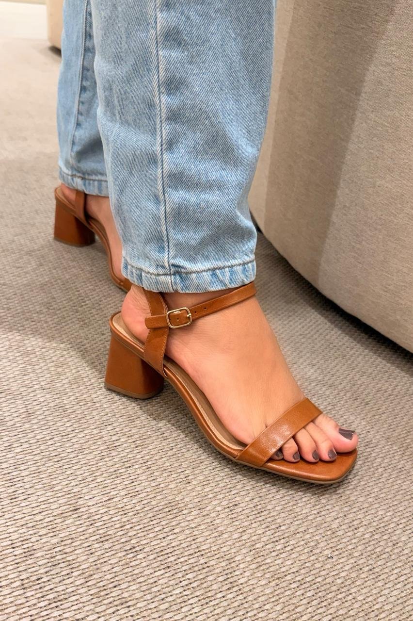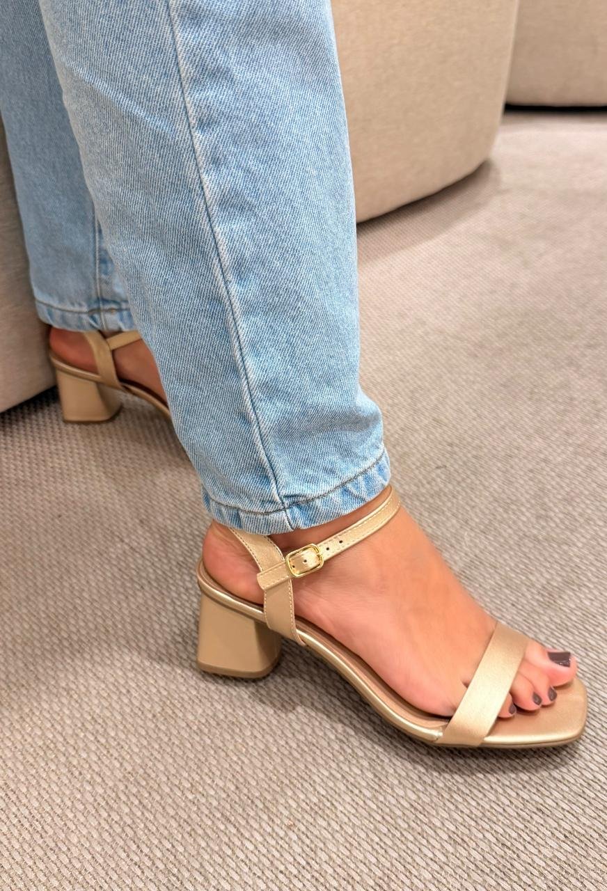 Sandália com salto bloco médio, clássica e elegante, ideal para locais sofisticados, delicada e confortável